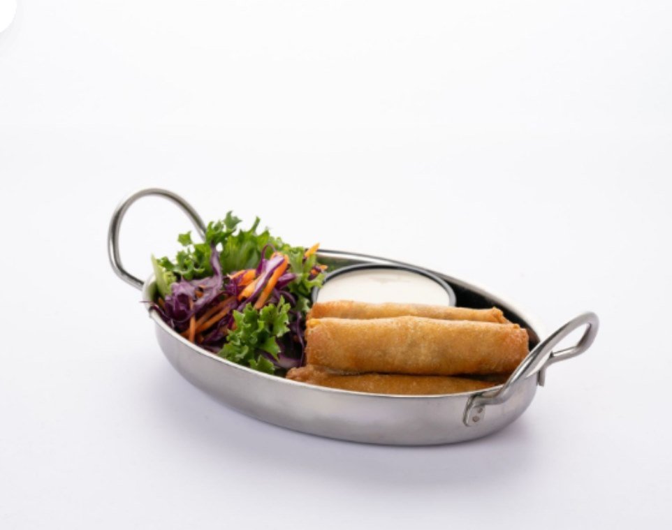 رول مقرمش محشي باللحمة بخلطة كوبية خاصة، يقدم مع طحينية